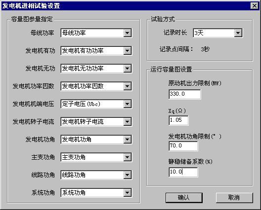 进相试验将记录所有模拟量及开关量数据,在试验画面中显示的参量另有设置对话框选择。